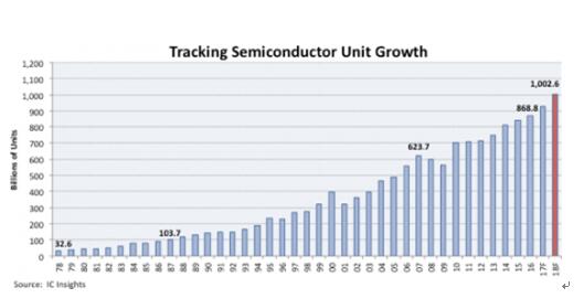 2018年全球半導(dǎo)體出貨量將超過(guò)1萬(wàn)億顆