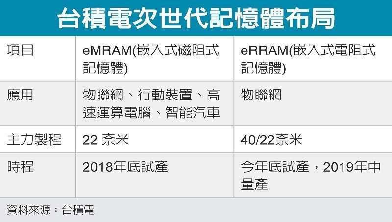 不過,在DRAM和NAND Flash制程已接近極限,包括AI人工智能、無人車、高階智能型手機和物聯(lián)網(wǎng)等要求快速演算等功能,是臺積電認為商機即將成熟并決定在2018及2019年提供相關嵌入及整合其他異質(zhì)芯片技術,進行商業(yè)化量產(chǎn)。