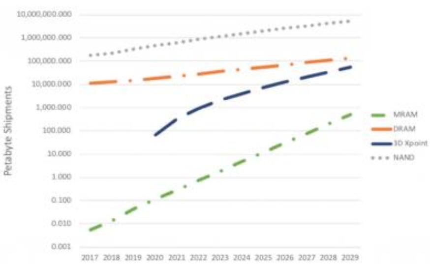 MRAM和STT-MRAM的收入將增長170倍,達(dá)到近40億美元的收入。下一代內(nèi)存技術(shù)的增長將主要由取代效率較低的內(nèi)存技術(shù)(例如NOR閃存和SRAM)推動。