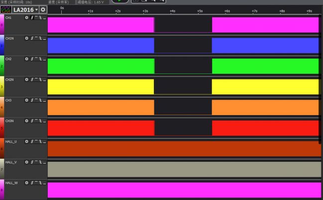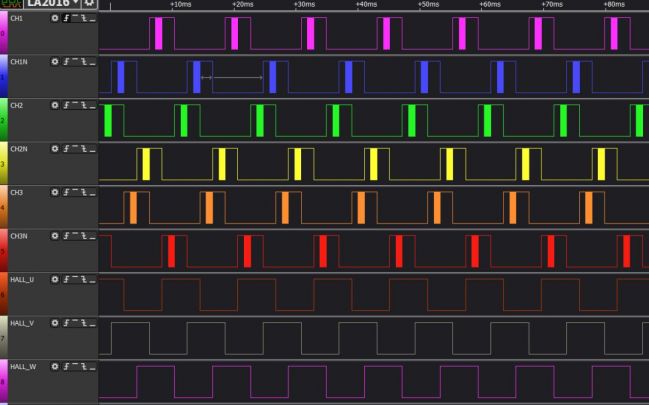 每次PWM換相后都會(huì)持續(xù)輸出一段有效電平,等到電流恢復(fù)后PWM波形恢復(fù)正常。